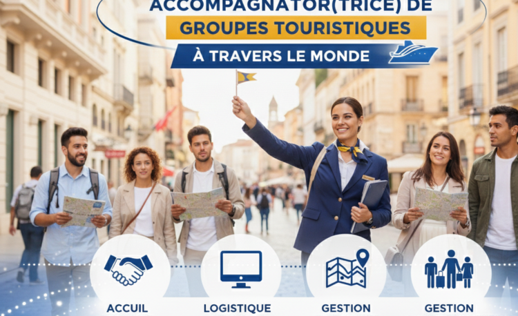 La formation Accompagnateur(trice) de Groupes Touristiques, diplôme accrédité, prépare les apprenants à guider et encadrer des groupes de voyageurs lors de circuits touristiques, excursions et visites culturelles. Cette formation permet de développer les compétences nécessaires pour assurer la sécurité, le confort et la satisfaction des participants tout en partageant des informations enrichissantes sur les sites visités, l’histoire, la culture et les traditions locales.